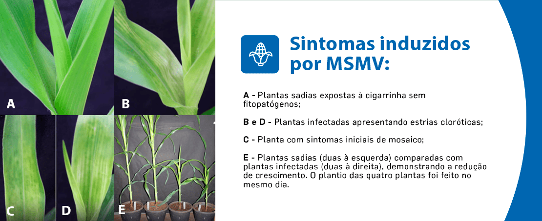 Recentemente, outro vírus transmitido pela cigarrinha-do-milho foi identificado no Brasil: o Maize striate mosaic virus (MSMV). Primeiramente, constatou-se sua presença em lavouras de milho no Estado de São Paulo em 2017. As plantas infectadas apresentam estrias cloróticas e redução de crescimento da planta.