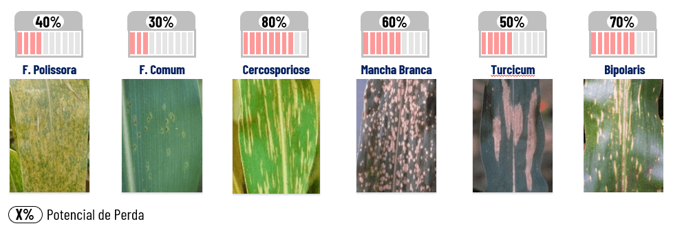 As doenças do milho são bastante agressivas, com algumas delas podendo gerar perdas de até 80% dependendo do momento de infecção e severidade. É de suma importância conhecer sobre o momento preferencial de infecção de cada doença.